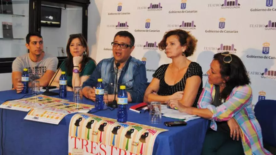 El teatro Guiniguada acoge hoy a las 20.30 horas la primera función de la comedia de teatro Tres, escrita por Juan Carlos Rubio. El director del montaje, Quino Falero, expuso ayer en la presentación de la obra: " Tres es una comedia que se ha estrenado en muchos países y habla de los logros y frustraciones de un trío de mujeres que se reencuentran al cabo del tiempo y descubren que las tres quieren tener hijos pero la edad no les permite tomárselo a la ligera".