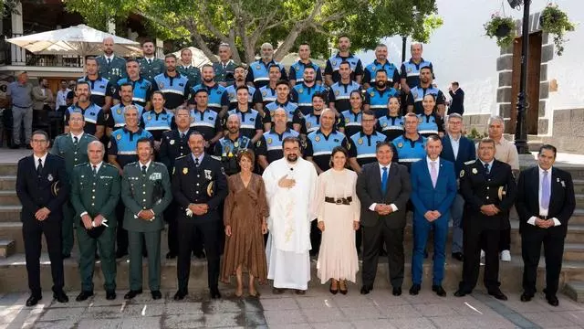 El Ayuntamiento de Mogán ha condecorado este pasado sábado 4 de octubre a dos agentes de su Policía Local con la cruz distintiva de la labor por permanencia en el servicio activo durante 35 años, y otros cinco han tomado posesión como oficiales en prácticas. Del mismo modo, se han entregado placas conmemorativas a siete agentes del mismo Cuerpo que recientemente han culminado su etapa profesional. El acto ha tenido lugar en el marco de la celebración de los Santos Ángeles Custodios, patrón del cuerpo de la Policía Local.